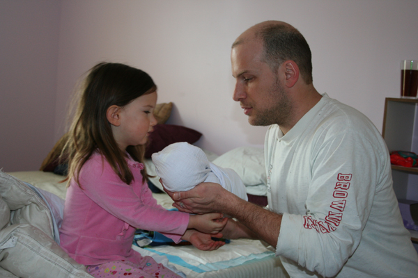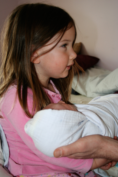 Nina got to hold her little brother soon after he came into the world. She was pretty excited, as we all are.